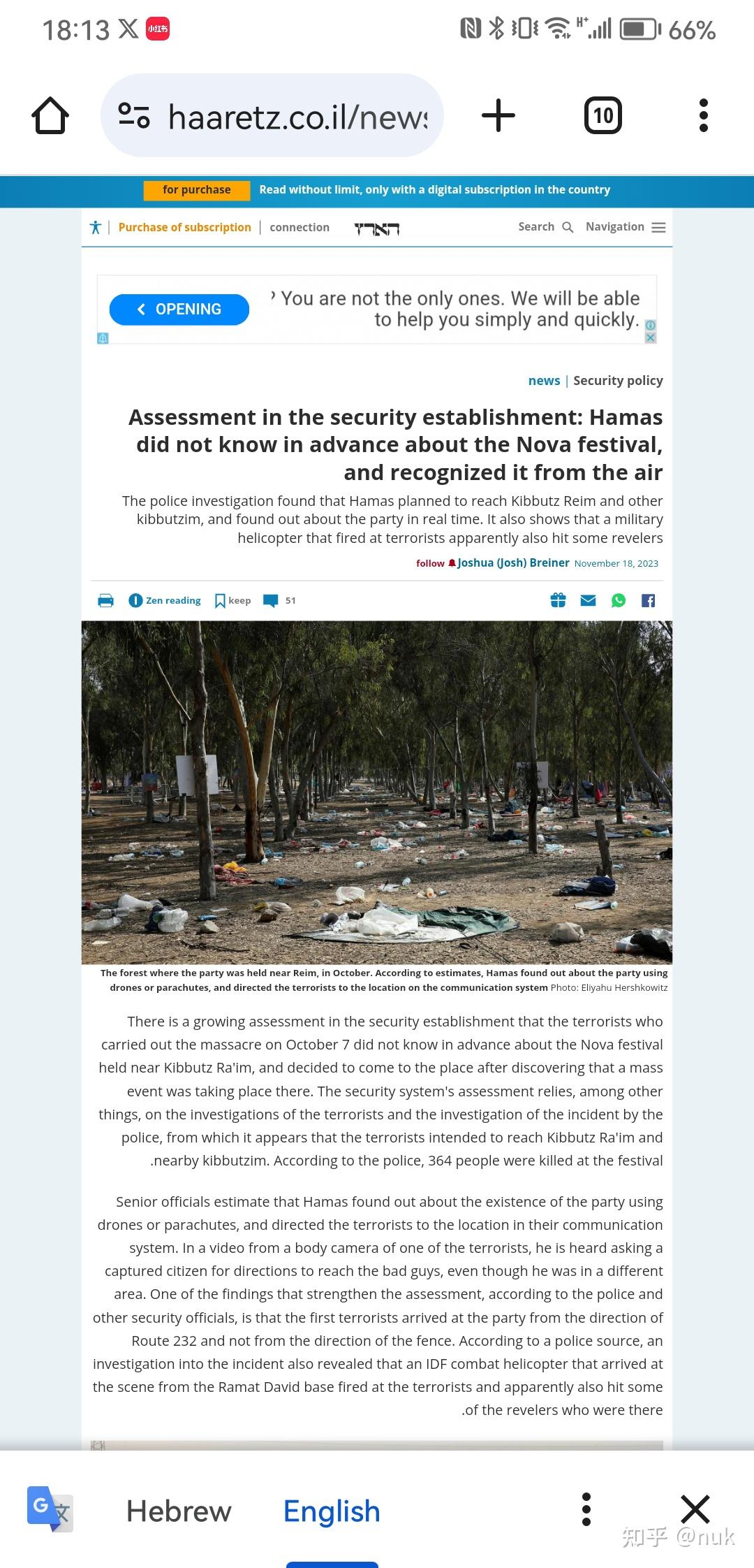 突发新闻:以色列承认阿帕奇直升机向逃离超新星音乐节的本国平民开火。“飞行员意识到,在被占领的前哨基地和定居点中区分谁是恐怖分子、谁是……存在巨大困难。”